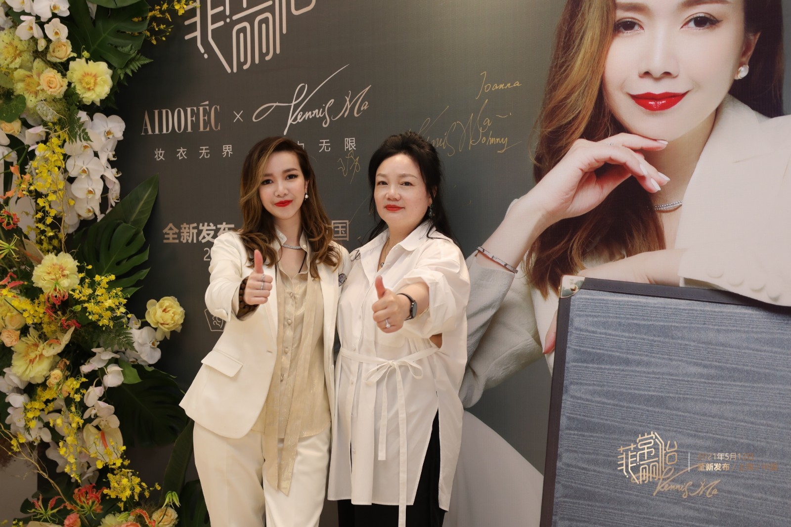 在发布会中,Vennis为几位模特儿打造了多款极富时尚感的穿搭及妆发的搭配,同时在舞台上与爱得菲AIDOFÉC品牌创始人及董事长刘昌琴女士共同为《菲常丽怡》联名系列的诞生作启动仪式,寓意双方在未来会继续推出更多不同款式的《菲常丽怡》系列产品。
